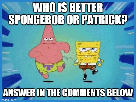 If you find this site serviceableness, please support us by sharing this posts to your preference social media accounts like Facebook, Instagram and so on or you can also Save this blog page with the title Spongebob And Patrick Running Meme Template by using Ctrl + D for devices a laptop with a Windows operating system or Command + D for laptops with an Apple operating system. If you use a smartphone, you can also use the drawer menu of the browser you are using. Whether it's a Windows, Mac, iOS or Android operating system, you will still be able to bookmark this blog.